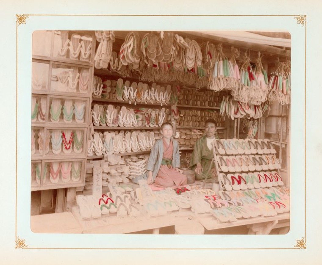 ズラッと履物が並ぶ、草履屋。