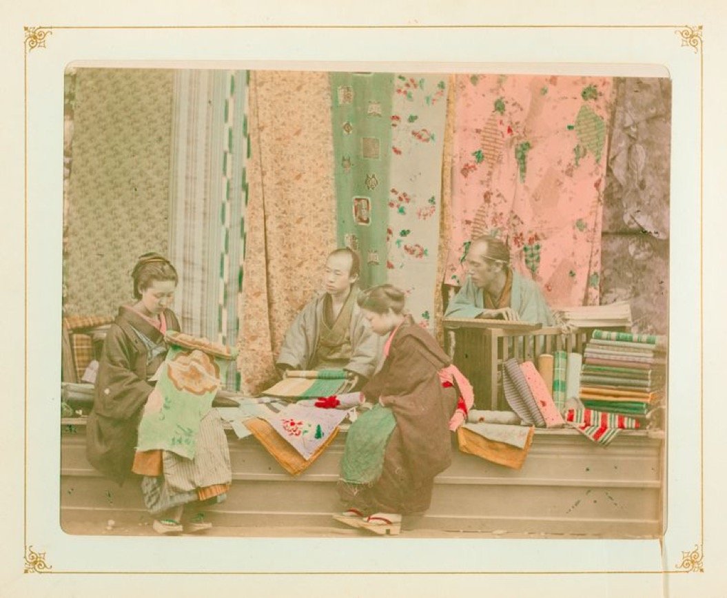 和服を選ぶ女性たち。お買い物ですね。