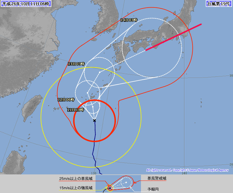 若干、勢力は弱まっているというが、すでに十分発達しているため、まったく安心できない。