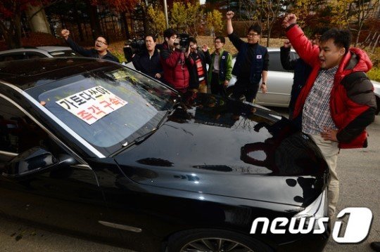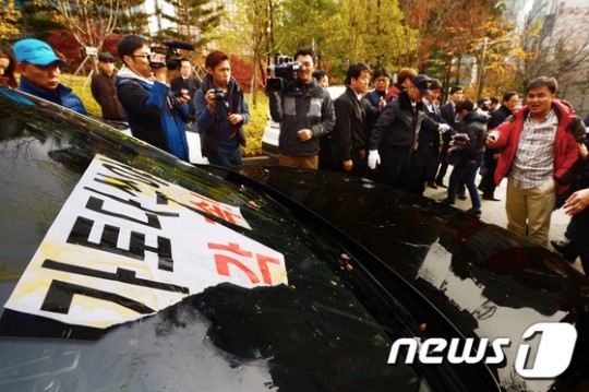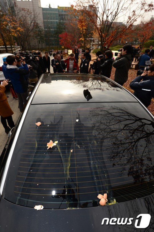 「韓国国民に謝れ」と叫び声、車に生卵投げつけ
