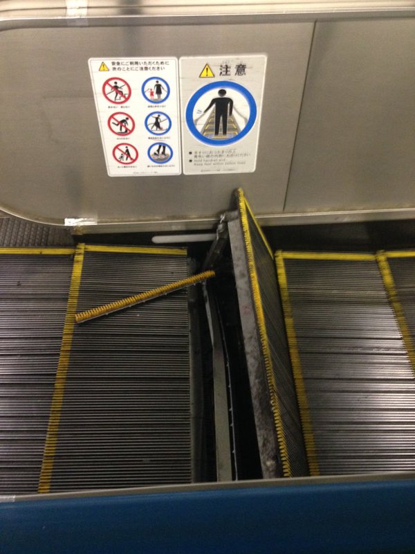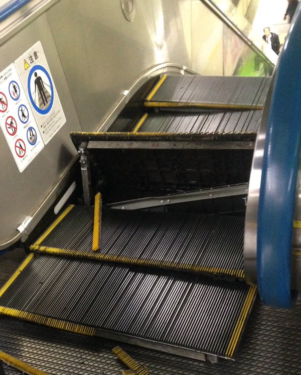 水道橋駅でエスカレーター事故。1メートル後ろで事故が起き、危機一髪で難を逃れた友達から送られた写真がひどい