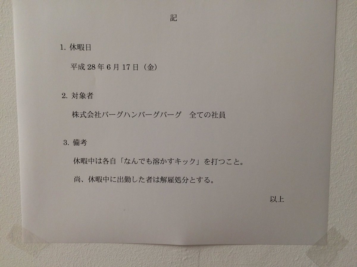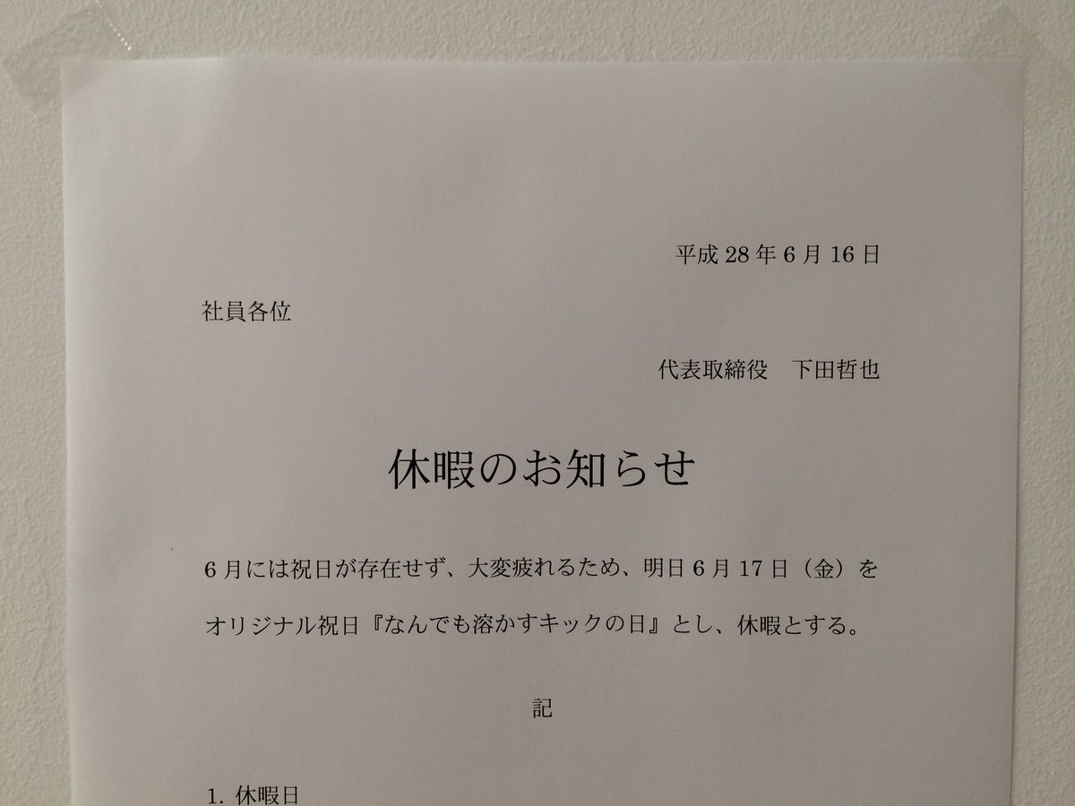 ムチャクチャな理由で明日会社が休みになりました