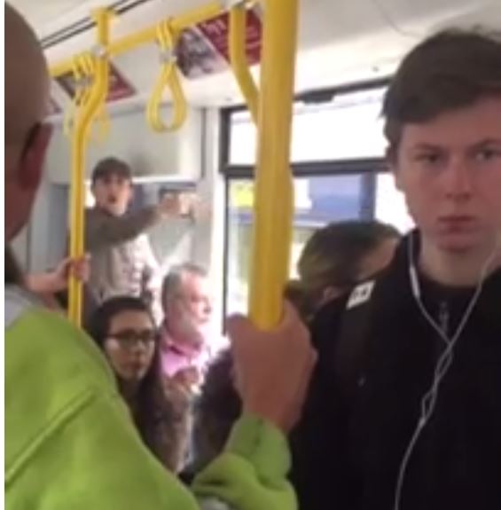言い合いが激しくなり、若者たちが男性の前まで来てビールを浴びせ、トラムから降りるように要求した。
