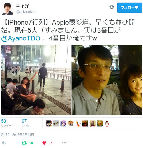 16日に発売される『iPhone 7』、『iPhone 7 Plus』に14日の深夜から並んでいる人が現れたようだ。