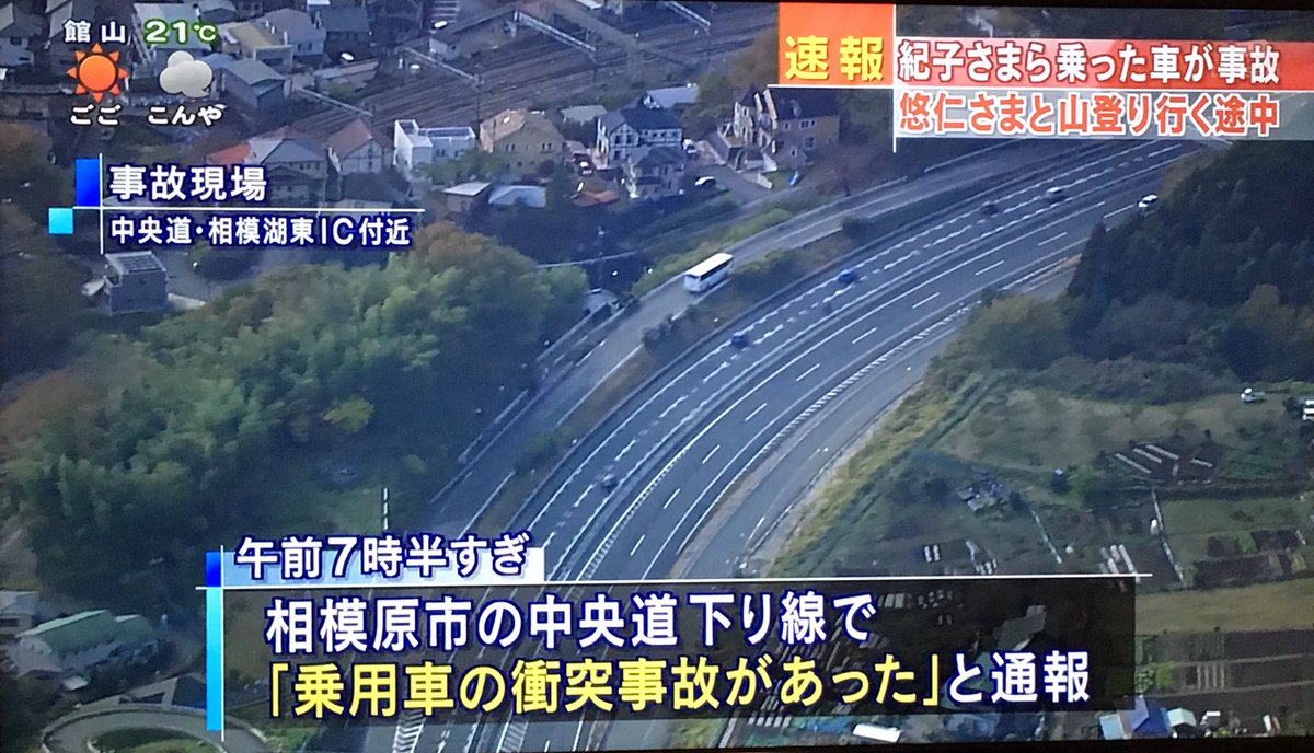 中央自動車道で秋篠宮妃・紀子さまや悠仁さまら6人の乗った車が追突する事故がありました。