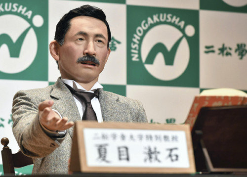 二松学舎大(東京都千代田区)などが製作していた文豪、夏目漱石のアンドロイドが完成し、 完成披露の記者会見が8日行われた。