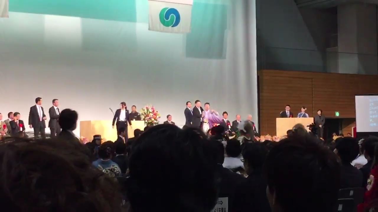 暴れている新成人を相手しながら市長挨拶をするというカオスな場面に。