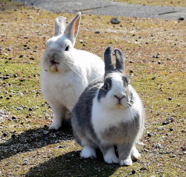 なぜウサギがいるのか。71年に地元の小学校で飼っていた8羽が放され、野生化した説が有力という。
