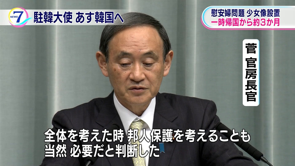 長嶺大使ら韓国帰任へ 菅長官「次期政権誕生に備え」