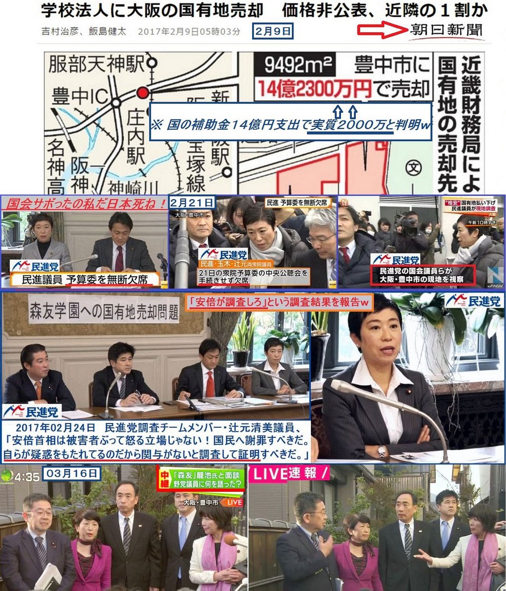 つーっか、テレビニュースでは「森友学園」と民進党の辻元清美生コン疑惑や