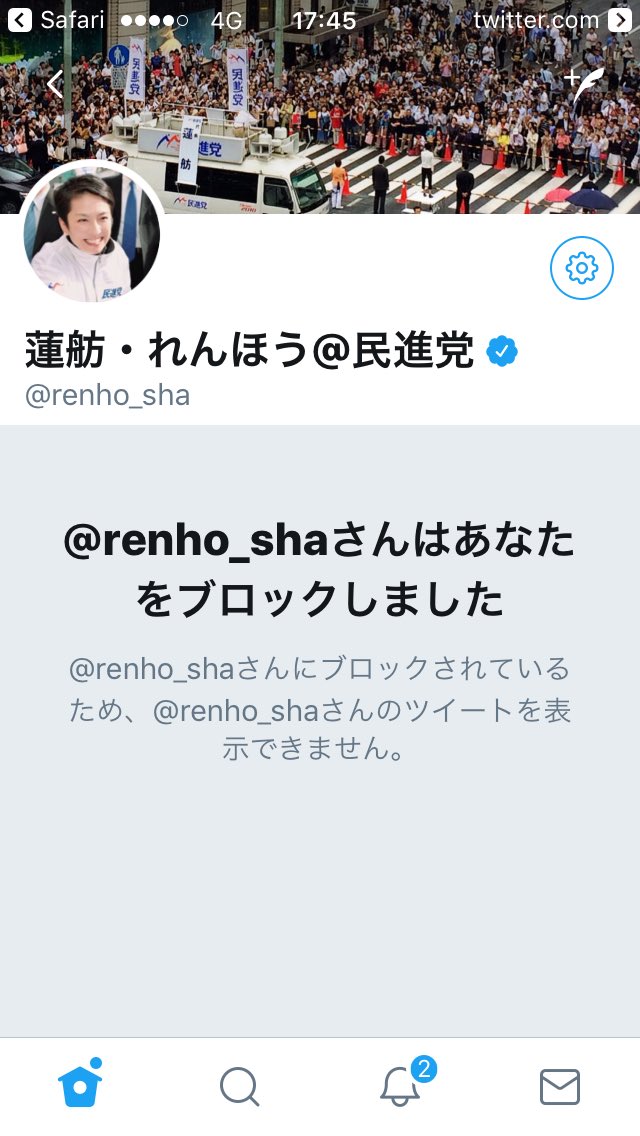 蓮舫代表はTwitterやFacebookで反対意見を唱えた人を即座にブロックすることで有名なのだ。