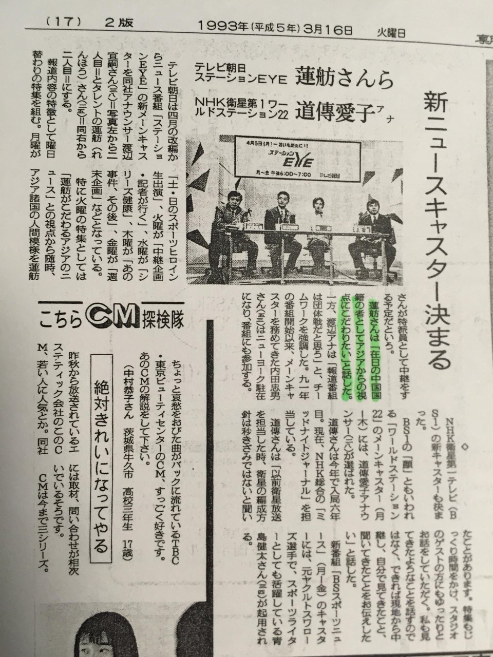 ■蓮舫「在日の中国国籍」と宣言 (朝日1993/3/16)
