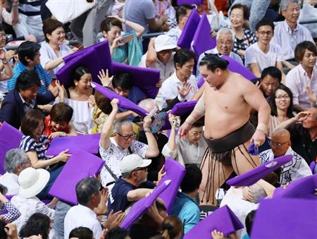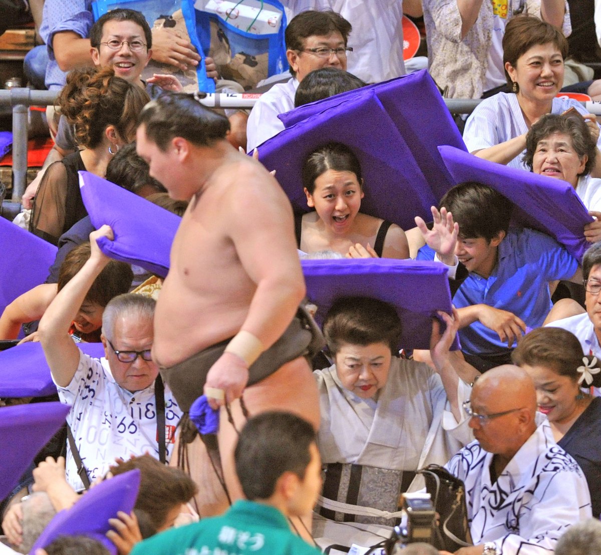 横綱白鵬(32)が関脇御嶽海(24)に寄り切られ、土がついた直後、館内に舞う座布団が後頭部を直撃するハプニングに見舞われた。