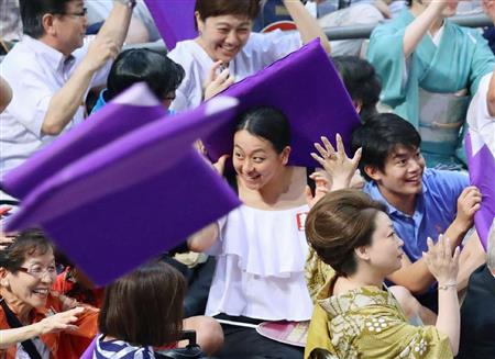 大相撲名古屋場所11日目(19日、愛知県体育館)フィギュアスケート女子の2010年バンクーバー冬季五輪銀メダリストで4月に現役引退した浅田真央さん(26)が観戦。