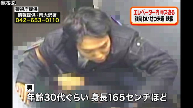 東京・町田市で2016年、マンションのエレベーター内で、 女子高生に無理やりキスをしようとした男の映像を、警視庁が公開した。