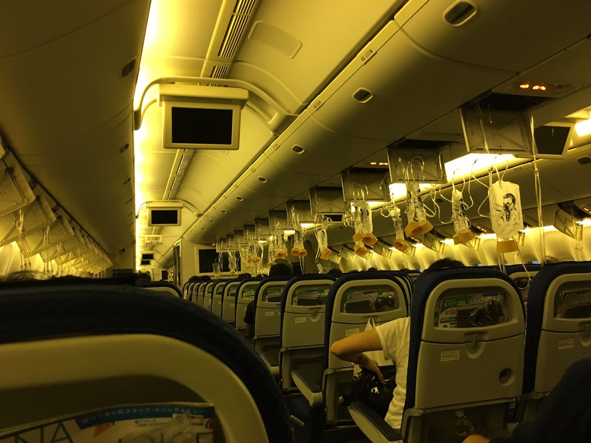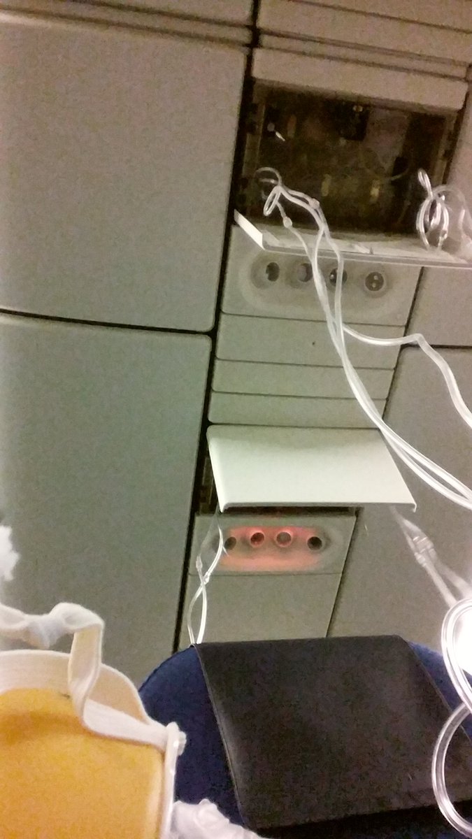 ANA37便に乗ったけど、途中で急降下、急旋回して羽田に戻ってきた。初めて酸素マスク出てきた…。 pic.twitter.com/zY2YJgzTXZ