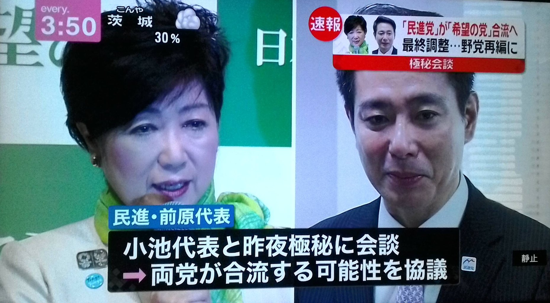 衆議院選挙に向けて大きな動き。民進党と希望の党が事実上の合流に向けて最終調整に入っていることが分かった。