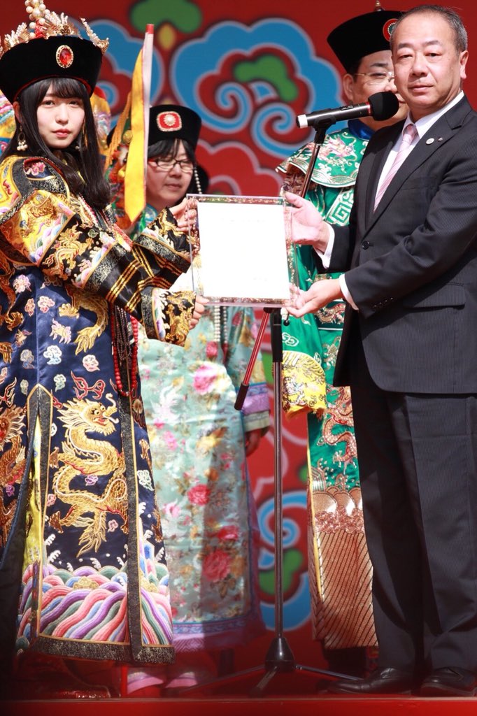 また公式ツイッターは「長崎ランタンフェスティバルの過去最高来場数106万人達成をお祝いして、皇帝パレードの長濱さんの写真です!」と続け、長崎でパレードに出演した際の秘蔵写真を投稿した。