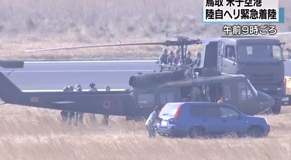 国土交通省美保航空事務所によりますと、鳥取県の米子空港に陸上自衛隊のヘリコプターが