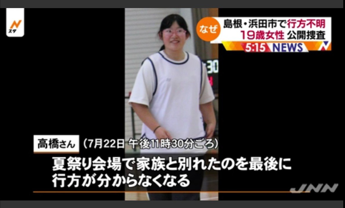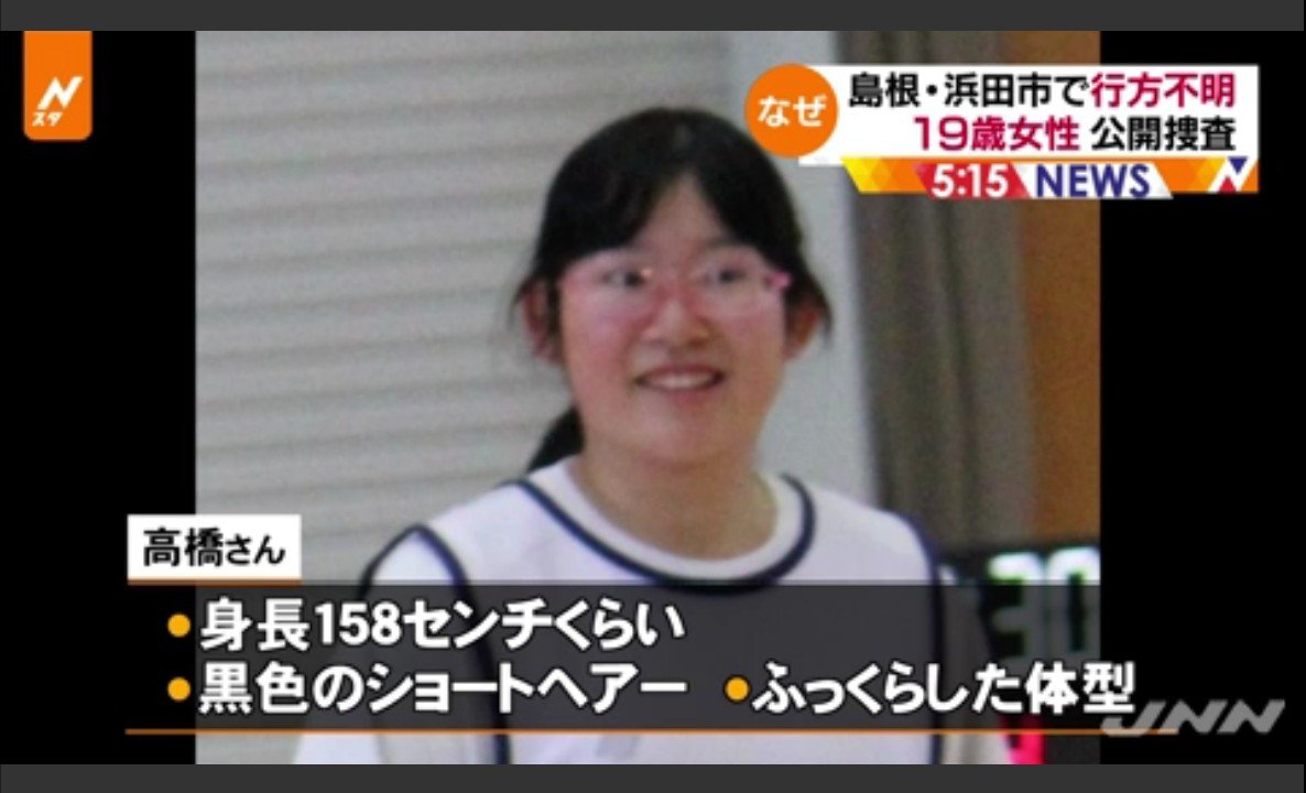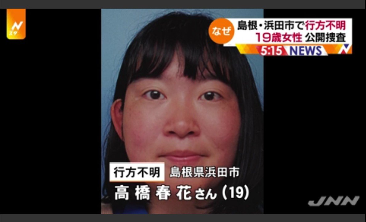 行方不明になっているのは、島根県浜田市の無職・高橋春花さん(19)です。