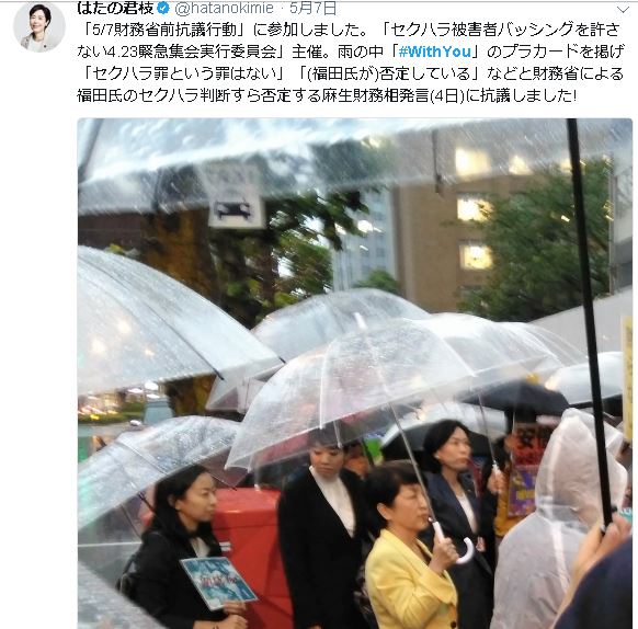 女性記者へのセクハラを報じられ財務事務次官を辞任した福田淳一氏について、麻生太郎財務相が「『セクハラ罪』という罪はない」と発言したことを巡り、女性団体関係者らが7日、東京・霞が関の財務省前や札幌、京都市内に集まり、一斉に抗議の声を上げた。