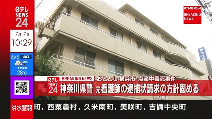 横浜・大口病院の連続中毒死、看護師を殺人容疑で逮捕へ