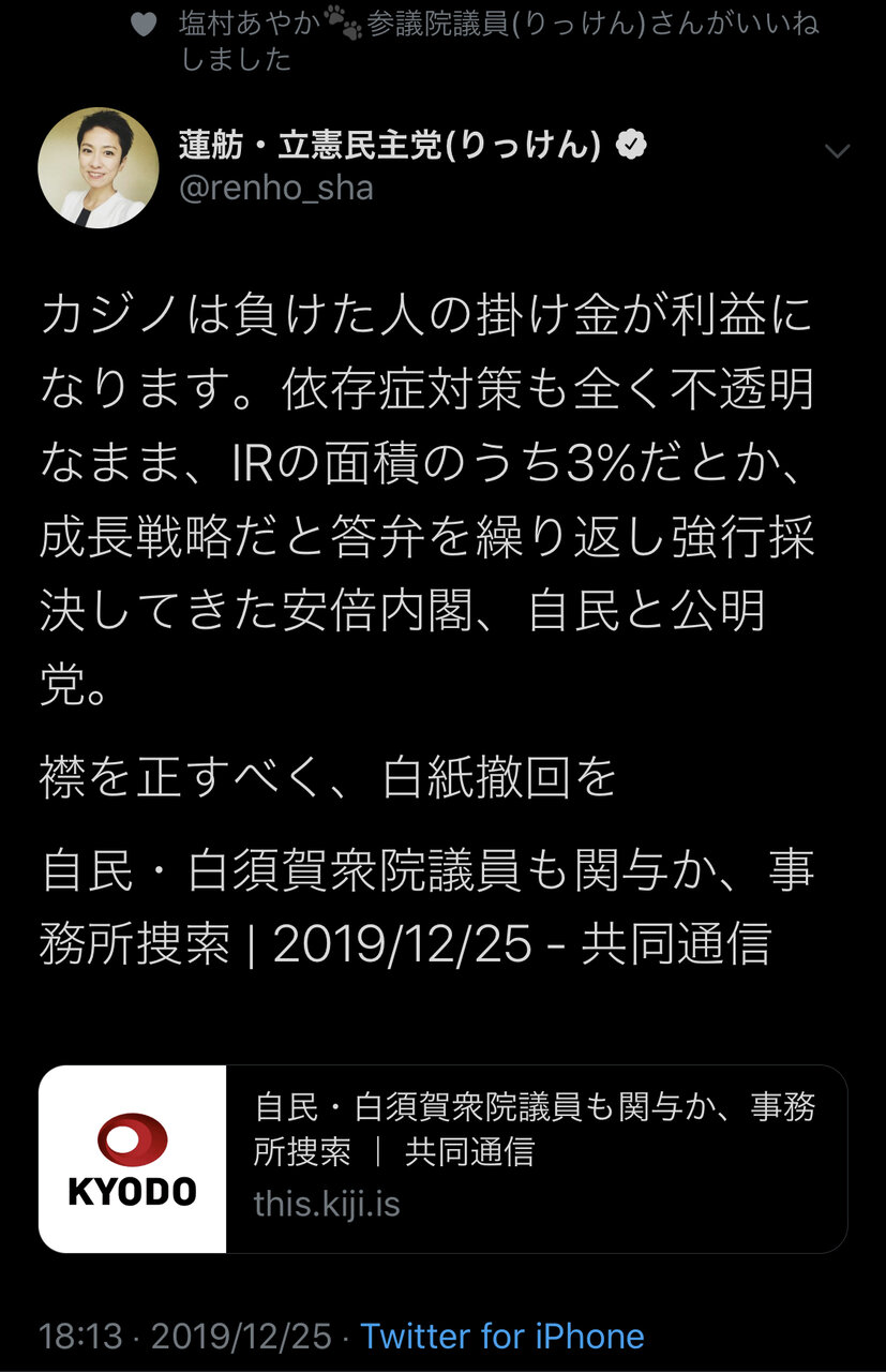 — 蓮舫・立憲民主党(りっけん) (@renho_sha) December 25, 2019