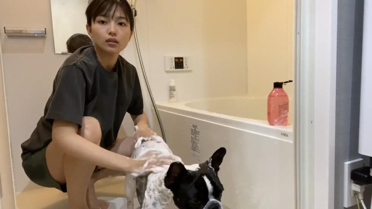 犬をシャンプーしてます言いながらも犬が全然写ってないやんけ!