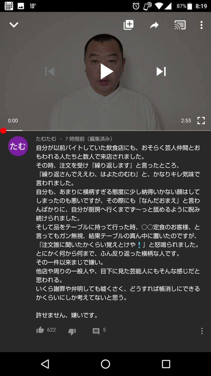 TKO木下さん、謝罪動画をアップするもコメント欄が木下の過去の悪事暴露大会会場になってしまう・・・「店に来たけどこの人すごい横柄な態度だった」