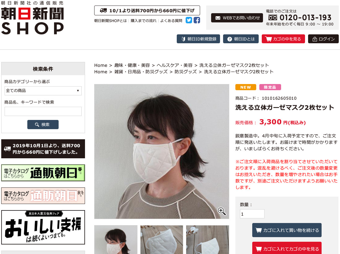 ていうか今は使い捨ての不織布マスクですら1枚あたり50~100円する