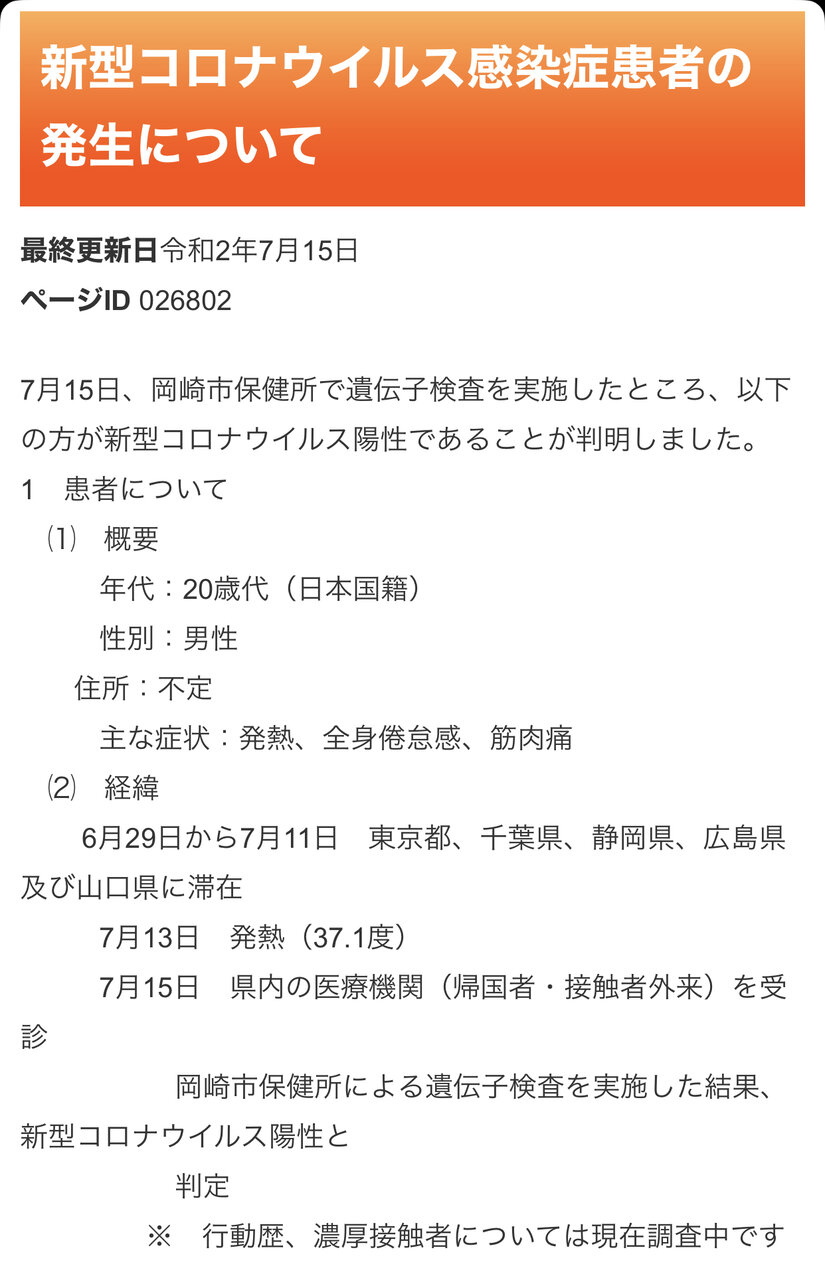 犬山署の容疑者は20代の男で、母親から「感染の疑いがある人と飲み会で同席していた」との連絡を受けて判明した。