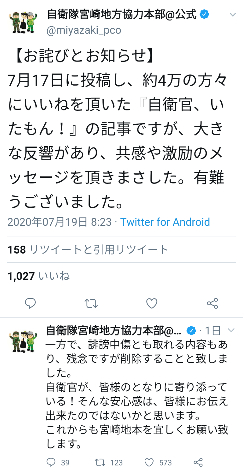 — 自衛隊宮崎地方協力本部@公式 (@miyazaki_pco) July 17, 2020