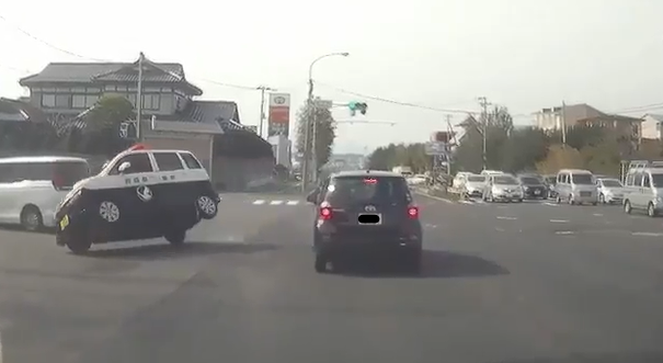 こんな低スピードで当たっても簡単にひっくり返るパトカーが悪い