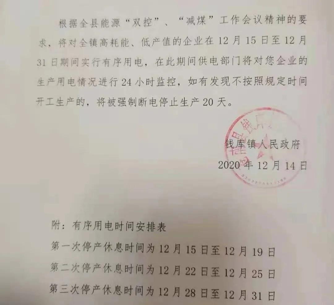 最近、浙江省の多くの工場が緊急通知を受け取り、すべての加工工場が今から12月31日まで生産停止するように要求されました!同時に、多くのネチズンは、関連するさまざまな管理部門から、停電「ワンストップスリー」、生産制限などの通知を受け取っていることを明らかにしました。