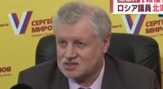 「公正ロシア」の党首を務めるセルゲイ・ミロノフ氏。「一部の専門家によると、北海道の全権はロシアにある」という独自の主張を展開している