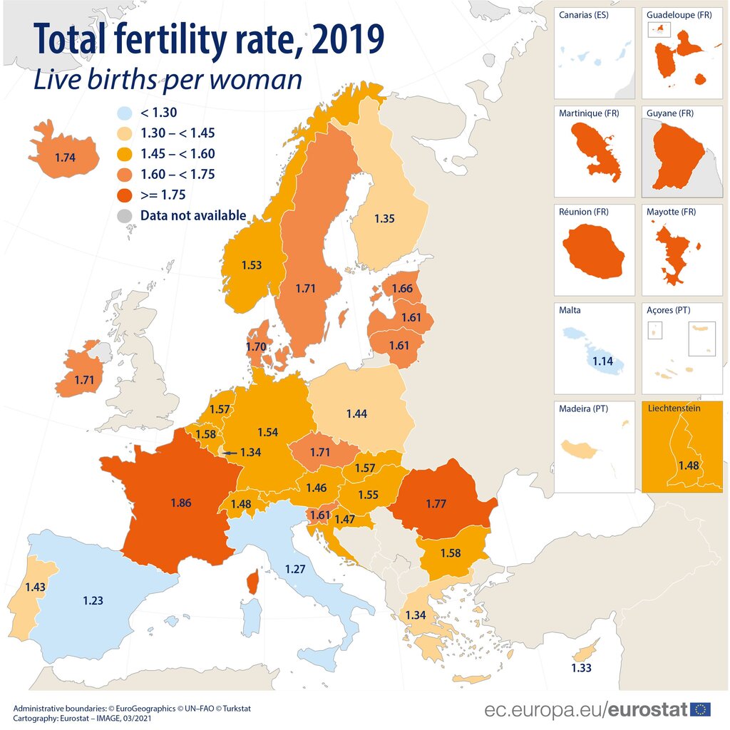 2010年には1.89だった合計特殊出生率も、2019年には1.35にまで低下。