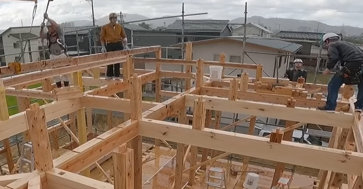 これは大手メーカーだけやん。都会の狭い土地だとクレーン入らんから大工が柱から建てとるよ