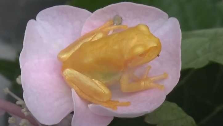 体や手足はすべて金色、目まで金色のカエル。