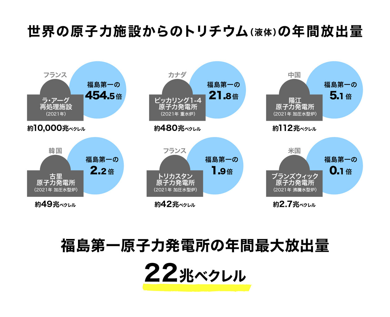 東電は、福島第一原発の年間放出総量を22兆ベクレル以下に抑える計画で、放出後のトリチウムの濃度は、世界保健機関(WHO)などの基準をはるかに下回るとしている... (略)