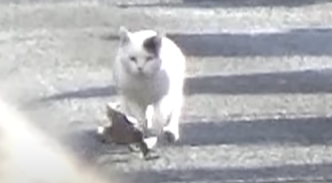 何かに気づき、住宅の敷地内へ入っていく1匹の猫。