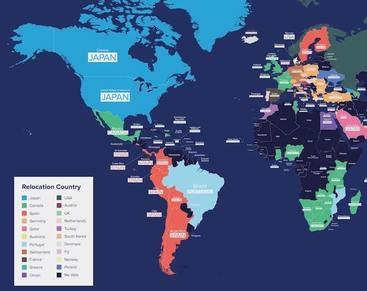 全体のランキングではドイツを上回ったスペインは、南米諸国からの移住先として人気だった。