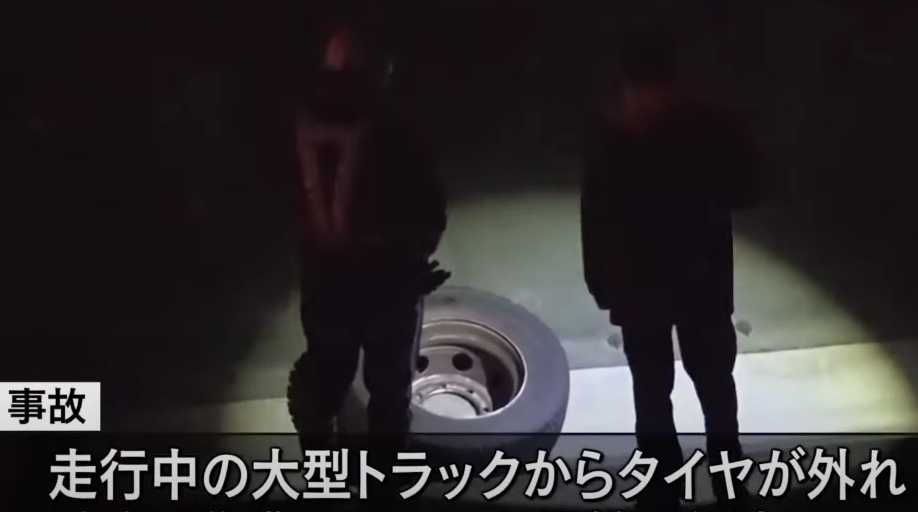 高速道を下りる数分前に違和感を抱き、その後トラックが動かなくなったため脱落に気付いたという。