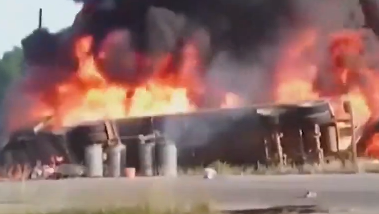 目撃者は「運転手が住民に対し、漏れ出た燃料は持ち去って構わないが、タンクに上ったりたたいたりしないよう呼び掛けていた」と証言。