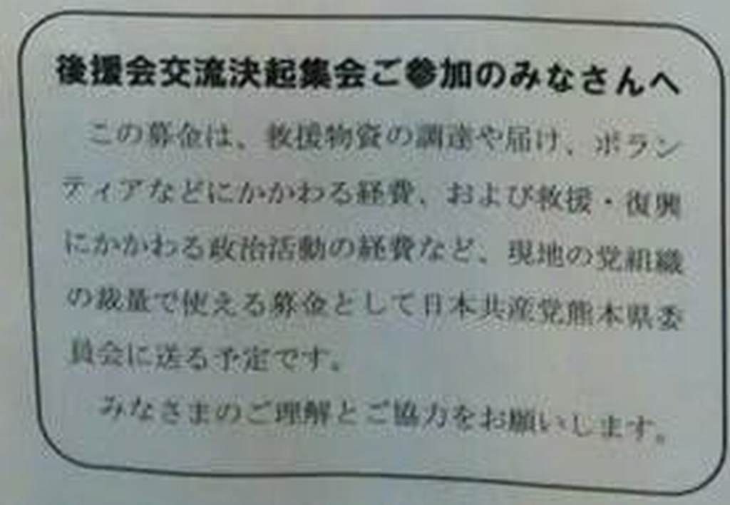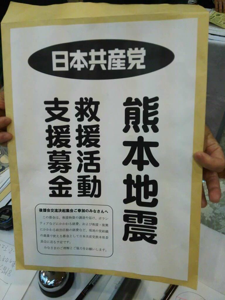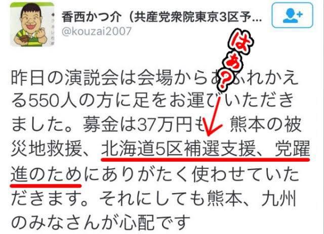 17日には募金が37万円集まったことを報告し、「熊本の被災地救援、北海道5区補選支援、党躍進のためにありがたく使わせていただきます」と投稿した。