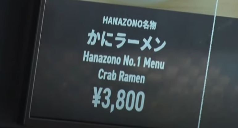 醤油やみそラーメンは1900円。かにラーメンはその倍の3800円。