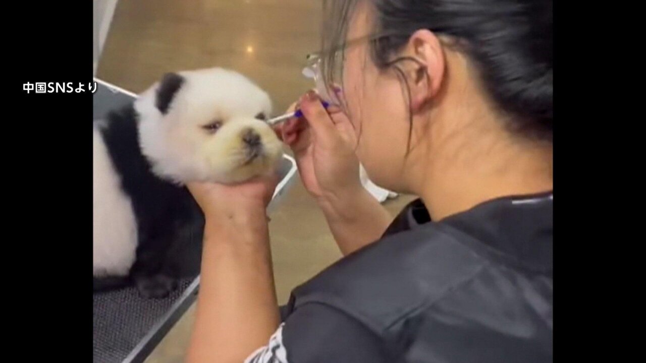 入園客が、撮影したパンダ犬の動画をSNSにアップしているのだが、これがネット上でも話題だ。
