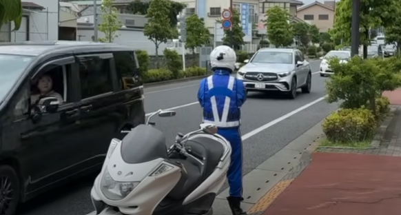 先日、ユーチューバーの男性が青色のジャージに反射ベスト、白いヘルメット、黒色ブーツを着用して道路脇に立ち、交通監視をおこなう動画を投稿しました。