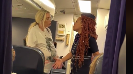 米紙「ニューヨーク・ポスト」が報じた動画では、飛行機の前方で客室乗務員に対して「座席が不快だから、ここに座らせてほしい」と空いているファーストクラスの座席を指差す女性が撮影されている。