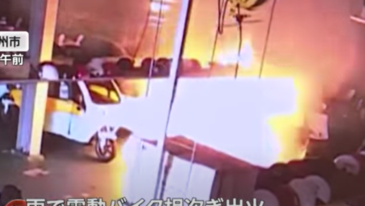 カメラが捉えたのは、ひとりでに電動バイクが燃え上がる瞬間だった。