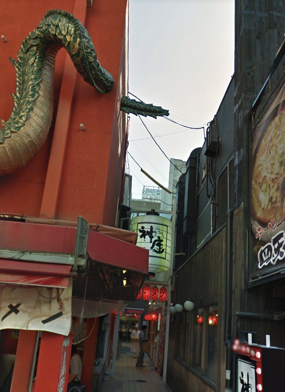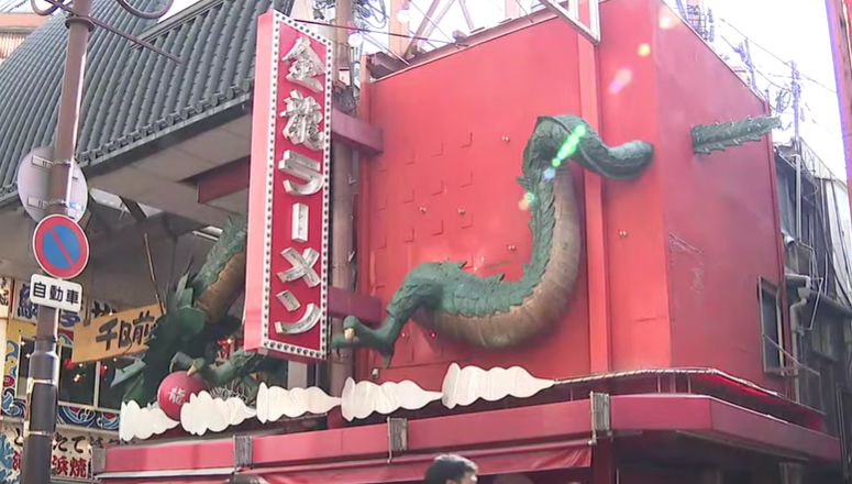大阪・ミナミの「金龍ラーメン」にある龍の立体看板については、店先の路地からが隣の土地にあたり、土地を所有する不動産会社が「立体看板のしっぽの部分や庇が境界線を越えている」として、